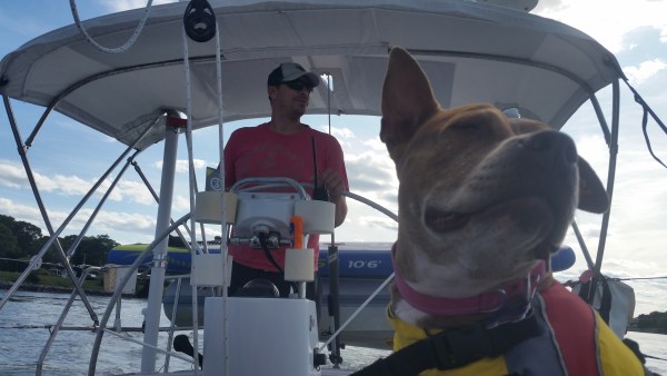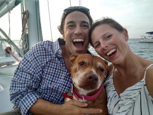 Kate, Curtis et Roxy le chien, propriétaires du J/46 SV Sweet Ruca